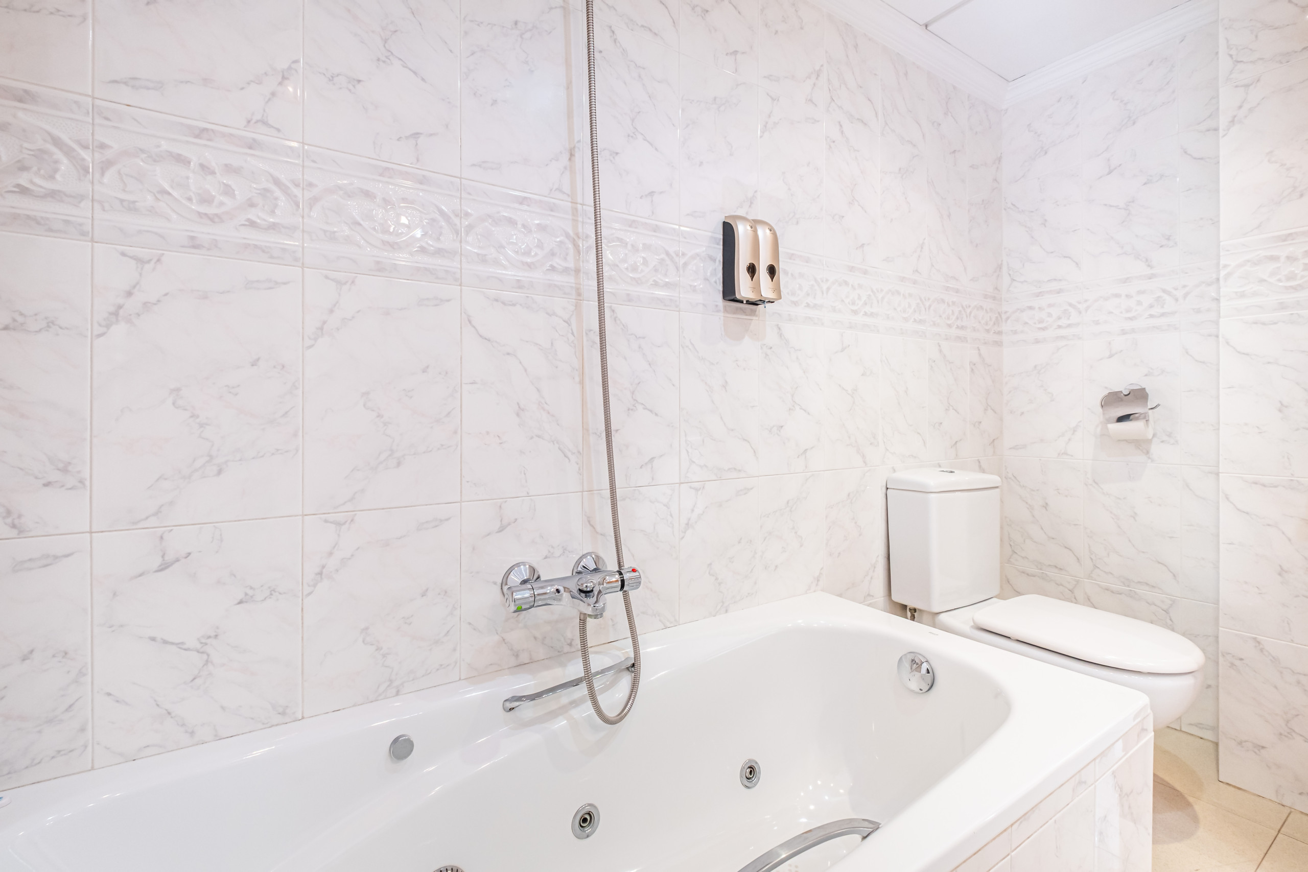 Los baños son grandes y limpios y las habitaciones también.En general bien.